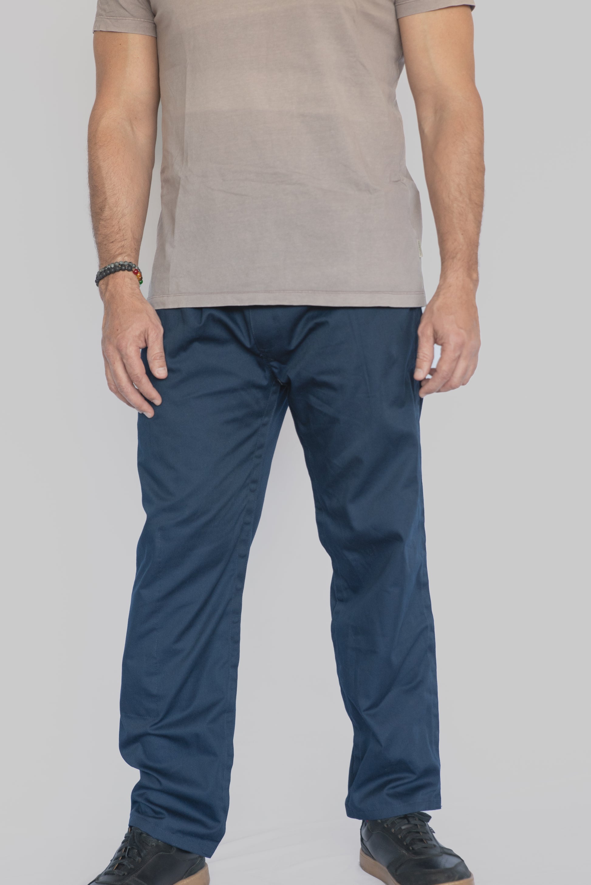 Pantalón casual de hombre, con apertura completa en su región central y por ambos lados con broches a presión posicionados de forma discreta.