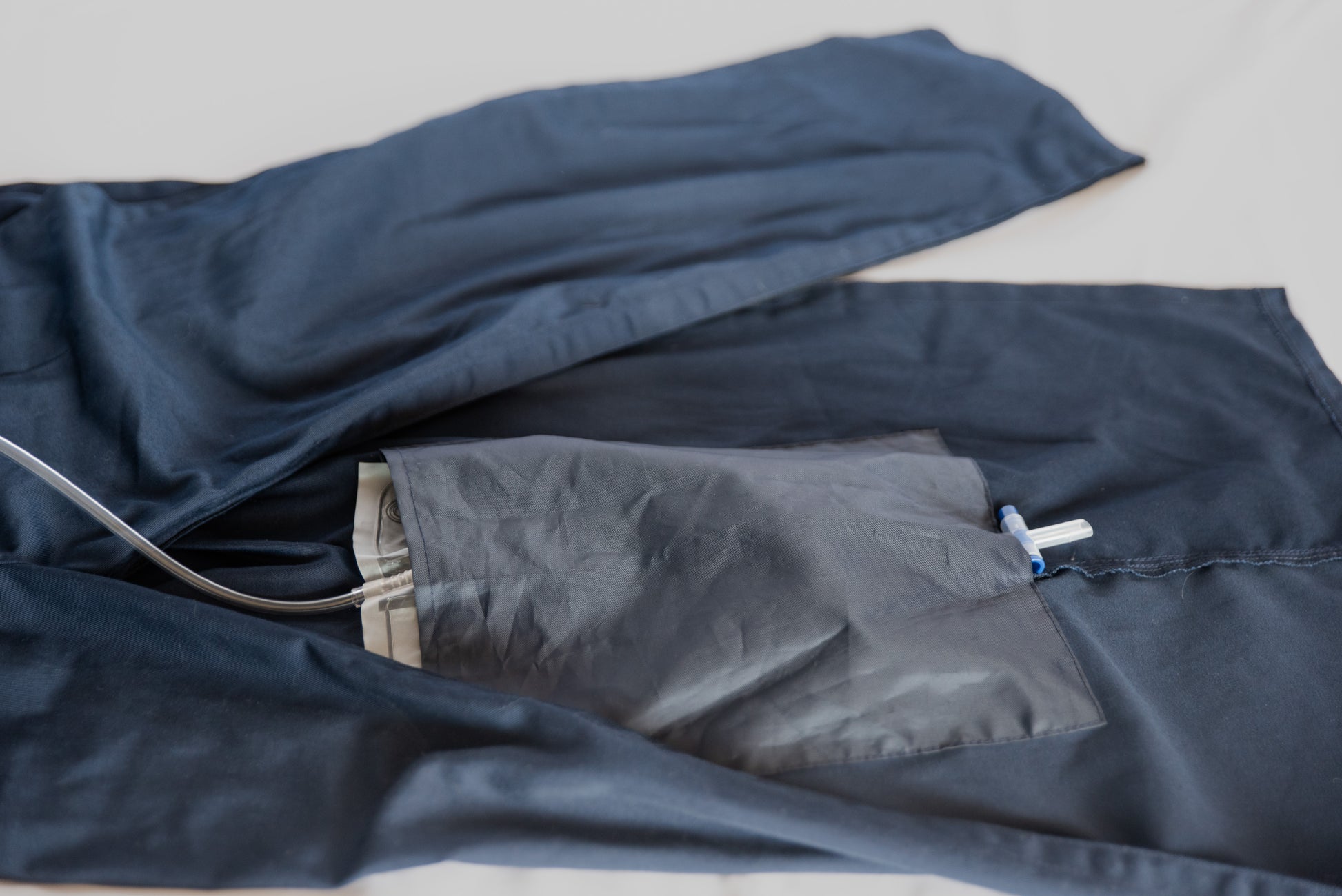 Cuenta con un bolsillo interior oculto en una de sus piernas, pensado para guardar de forma segura y discreta la bolsa de sonda Foley.